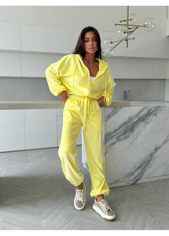 Жіночий костюм із м'якого плюшевого велюру – стильний вибір для повсякденного гардероба. Футболка вільного крою зі спущеним рукавом до ліктя прикрашена стразами. Штани палаццо з високою посадкою, розрізами та бічними кишенями у шві. Талія на гумці для зручної посадки. Ідеальний варіант для дому, прогулянок і відпочинку.