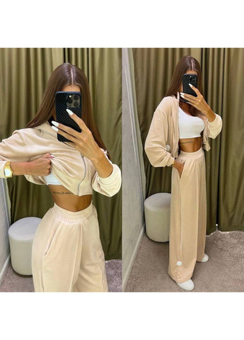 Ми презентує велюровий костюм, який поєднує трендовий стиль і абсолютну зручність! Кофта вільного крою «летюча миша» з горловиною-стійкою та рукавами на еластичних манжетах оберігає тепло і дарує абсолютну свободу рухів. Зручна застібка-блискавка та практичні кишеньки додають функціональності кожному дню. Штани прямого вільного крою з високою посадкою та еластичною талією і бічними кишеньками роблять образ завершеним і неймовірно комфортним. Стиль, зручність і трендова велюрова текстура — все в одному костюмі! Пояс НЕ входить в комплект.