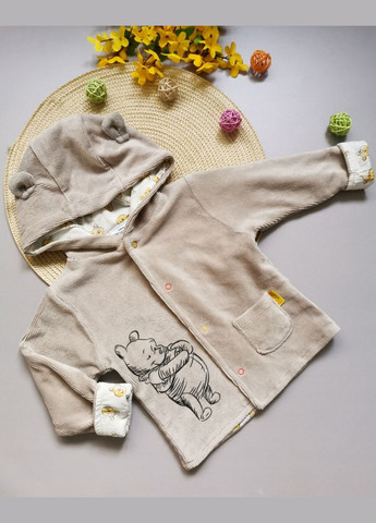 Це важливо! Підбирайте розмір лише по замірам вказаним нижче в цьому описі. У різних моделей однаковий розмір може мати різні заміри. Всі заміри ми робимо власноруч. ===РОЗМІР 80=== довжина 32 см ширина 28 см плечі 23 см рукав від плеча 26 см Кофта матеріал вельвет підклад 100% бавовна застібається на кнопки є кишенька на капюшоні миленькі вушка Чудова кофтинка з улюбленим персонажем стане найулюбленішою в гардеробі малюка. Можна використовувати як верхній одяг в теплу пору року