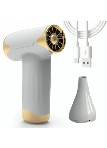 Турбовентилятор - це універсальний і ефективний вентилятор, який стане незамінним помічником у різних ситуаціях. Портативний вентилятор підходить для розпалювання вогнища, очищення техніки від пилу і надування матраців, забезпечуючи зручність у використанні, а також роблячи повсякденні завдання більш простими і швидкими. Особливості: - Кілька режимів потоку повітря - Заряджання через кабель Type-C - Робота від акумулятора Характеристики: - Тип товару: акумуляторний вентилятор - Колір: білий - Потужність: 20 Вт - Тип живлення: акумулятор - Тип заряджання: від USB - Роз'єм для заряджання: Type-C - Кількість швидкостей: 4 - Керування: механічне - Тип: портативний - Матеріал корпусу: пластик - Розмір: 13.3х8.2х3.2 см Комплектація: - Вентилятор на акумуляторі - Конусна насадка - USB-кабель - Упаковка