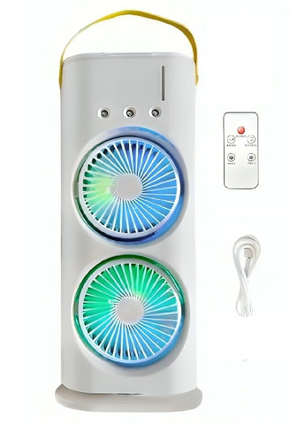 Вентилятор на акумуляторі поєднує функції вентилятора, зволожувача та охолоджувача повітря. Завдяки компактному розміру і легкій вазі настільний вентилятор можна легко переміщати між різними приміщеннями. Вентилятор має три режими роботи, що дає змогу вибрати комфортний повітряний потік. Особливості: - Індикатор заряду батареї - Ручка для перенесення - Зволоження повітря - Регульований повітряний потік - Налаштування підсвічування Характеристики: - Тип: акумуляторний вентилятор - Колір корпусу: білий - Обсяг розпилення: 45-225 мл/год - Ємність резервуара для води: 280 мл - Тип живлення: акумулятор - Ємність акумулятора: 4000 mAh - Тип зарядки: від USB - Потужність: 10W - Підсвічування: 7 різних кольорів - Вентилятори: 3 режими - Зволожувач повітря: 3 режими - Роз'єм для зарядки: Type-C - Діаметр вентиляторів: 11 см - Поворот вентилятора: 180 град. - Управління: кнопки на корпусі, пульт ДУ - Матеріал корпусу: пластик - Розміри: 37.5х14.5х9 см - Вага: 0.89 кг Комплектація: - Вентилятор з охолодженням - USB-кабель - Пульт ДУ - Інструкція - Упаковка