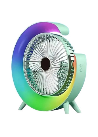 Маленький вентилятор - це стильний і функціональний пристрій, що не тільки забезпечує прохолоду, а й додає яскравості та затишку в будь-яке приміщення. Міні-вентилятор ідеально підходить для дому, офісу або інших місць, де потрібне ефективне охолодження й атмосферне освітлення. Світлодіодне підсвічування пропонує кілька колірних режимів. Характеристики: - Тип товару: вентилятор настільний - Колір: зелений - Площа застосування: 10 кв/м - Рівень шуму: 36 дБ - Зворотність: 180 град - Підсвічування: RGB - Кількість швидкостей: 3 - Тип живлення: акумулятор або USB - Ємність акумулятора: 1800 мА/год - Матеріал корпусу: АБС-пластик - Тип заряджання: від USB - Розміри: 235х235х50 мм Комплектація: - Настільний вентилятор - USB-кабель - Упаковка
