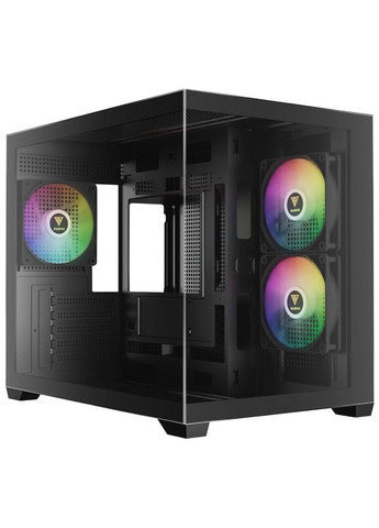 Корпус формату ATX має інноваційний дизайн «TRIFORCE». Передня панель з дуже потужною здатністю пропускного повітряного потоку, має попередньо встановлені три 120мм ARGB вентилятори. Габарити корпусу дозволяють встановлення 360-мм системи рідинного охолодження як на передній, так і на верхній панелі. Підтримує материські плати формфакторів E-ATX/ATX/M-ATX/ITX, відеокарти довжиною до 390 мм, попередньо налаштовані варіанти зберігання з відсіками для дисків 2 x 3.5" і 2 x 2.5", установка повітряного охолоджувача процесора до 170 мм висотою і блоку живлення до 410 мм. Матеріал корпусу - це міцний металевий каркас товщиною 0.7 мм, відповідає всім вимогам високопродуктивних ігрових систем.