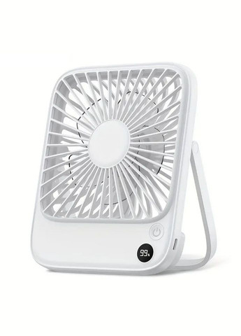Режим живлення: Живлення від акумулятора та від USB подвійного використання Робоча напруга: ≤36В Дисплей: є (показує швидкість та % заряду) Властивості батареї: Акумулятор 4600 мАч Акумулятор: Літієва батарея серії 18650 Увімкнути/вимкнути: Кнопка Включені компоненти: Шнур Колір – білий Колір лопатей-прозорий Дизайн електричного вентилятора: Настільний вентилятор, підлоговий, портативний (універсальний) У комплекті шнур для заряджання Габарити вентилятора: 165х134х38мм Упаковка: 168х140х41мм Вага вентилятора - 202гр Вага в упаковці – 253гр
