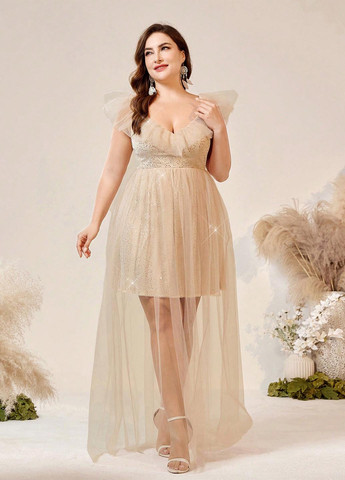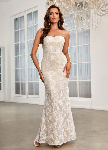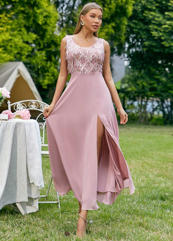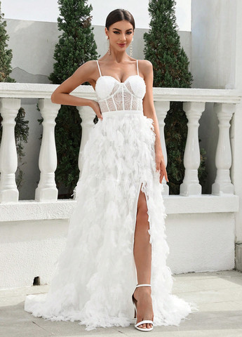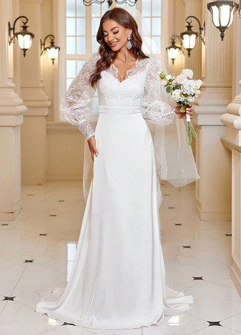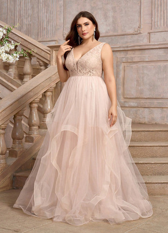 Елегантна весільна сукня – SHEIN Belle Lace, у відтінку пастельного рожевого створює образ романтичної мрії. Корсет із витонченим мереживом акцентує талію, а глибокий V-подібний виріз додає легку драматичність. Повітряна багатошарова спідниця м’яко струменить, надаючи силуету грації. Такий образ поєднує класичну елегантність із сучасною делікатністю — вибір нареченої, що прагне бути незабутньою.