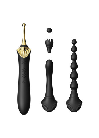 Пропонуємо купити багатофункціональний вібратор Zalo — Bess 2 — нову покращену версію вібратора Zalo — Bess. Додаткова насадка у вигляді анального намиста розширює діапазон використання, а функція підігріву до 42 °C робить його використання ще приємнішим. Ідеально підходить для впливу на всі ерогенні зони! Кліторальна, вагінальна, анальна стимуляція — для цього красеня немає нічого неможливого. Два мотори з автономним керуванням працюють у 8 режимах кожен, а двостороння конструкція дає змогу використовувати і більш тонку частину — для точкової стимуляції, і ширшу — для делікатної. Незвичайний багатофункціональний вібратор Zalo — Bess 2 — це нескінченне джерело жіночої насолоди! Адже він один може стимулювати буквально всі ерогенні зони, більш або менш інтенсивно за вашим бажанням. Крім того, він має просто приголомшливий вигляд, ніби справжній магічний жезл. Характеристики вібратора: двостороння конструкція: тонка частина призначена для точкової стимуляції клітора, інших чутливих точок та для використання з насадками, широка — схожа на стовбур класичного вібратора — для введення та стимуляції широких зон; 2 мотори, в обох частинах вібратора; по 8 режимів роботи для кожного мотора; мотор у вузькій частині створює справді потужні вібрації завдяки технології DirectPower: до 10 тисяч коливань на хвилину! вузьку частину можна використовувати без насадок для особливо яскравих відчуттів або з насадками для різноманітних ігор; підігрів широкої зони до 42 °C для приємного тепла всередині, на підігрів знадобиться 30-60 секунд; приємні розміри ввідної частини: 9 см у довжину і 3,3 см у діаметрі; до 2 годин безперервної роботи (залежить від інтенсивності вибраних режимів); зручно лягає в руку будь-якою стороною; вібратор покритий ніжним шовковистим силіконом, безпечним та приємним на дотик; гарне та стильне оздоблення; у комплекті — м’який мішечок для зберігання; розкішне паковання. Але найголовніше — це насадки багатофункціонального вібратора Zalo — Bess 2! Цілих 4 насадки дають можливість експериментувати з усіма ерогенними зонами. Насадка-кулька: силіконова насадка для точкової інтенсивної стимуляції клітора, діаметр 1,2 см, пружна і гладенька. Насадка-квітка: унікальна насадка з безліччю пелюсток і відростків, кожен із яких буде тремтіти й охоплювати вашу перлину для всебічної стимуляції. Підходить і для ігор із сосками. Насадка для точки G: вигнута пружна насадка загальною довжиною 13 см, яку можна надягати на будь-яку сторону вібратора. Хочете стимуляцію потужнішу — надягайте на вузьку частину, більш делікатно — на широку. Насадка пружна, гнеться та комфортно відчувається всередині. Комфортні розміри — ввідна довжина 9,5 см і діаметр 2 см — а також загнута головка роблять насадку придатною і для анального введення, і стимуляції простати. Насадка-анальне намисто: 6 пружних кульок, діаметром від 1,2 до 2 см, чудово підходить для акуратного анального введення та чуттєвої стимуляції. Намистини розташовані від меншої до більшої — для легкого введення. Загальна довжина анальної насадки 17,52 см. Діаметри намистин: 1,2; 1,4; 1,6; 1,8; 2 см (дві намистини). Також можна одягати будь-яку робочу частину іграшки. Будьте уважні: рівень водонепроникності вібратора IPX4, він не призначений для ігор у воді та очищення під прямими струменями. Використовуйте спеціальні засоби для іг