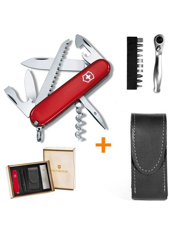 Victorinox Camper (1.3613) - складаний ніж із модельного ряду Swiss Officer's knife (офіцерські ножі, 91 мм). Camper включає 13 інструментів: 2 леза, штопор, пила по дереву, відкривалки, викрутки та інші. Вага 74 г. Незамінний інструмент для розпилювання деревини або різання мотузок для наметів під час походів. Кількість функцій: 13 Довжина у складеному вигляді: 91 мм Довжина леза: 70 мм Ширина у складеному вигляді: 27 мм Товщина: 17,5 мм Вага: 74 г Колір: червоний Марка сталі: нержавіюча сталь Тип замку: Slip joint Матеріал рукояті/накладок: целідор/ABS-пластик