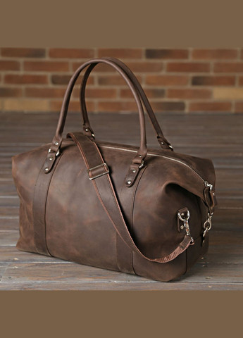 Колір: коньячний; Матеріал: натуральна шкіра високої якості; Розмір (ШхВхГ, см.): 55х31х24. Цікава та стильна дорожня сумка виконана виключно з цільної товстої, якісної, вінтажної шкіри, характерними ознаками якої, є: неоднорідність окраси та потертості, які надають виробу вишуканого, індивідуального вигляду. Вся фурнітура вищої якості, в сумці немає картону, немає підкладочних тканин, форма виробу зберігається завдяки пружності цільної шкіри. Завдяки цьому виріб має високу зносостійкість та благородний зовнішній вигляд. Особливості: - всередині одне містке відділення, закривається на блискавку; - дві додаткові кишені на застібках з боків сумки; - оригінальний дизайн. Виріб прикрашений логотипом виробника; - дві укріплені міцні шкіряні ручки, для зручного носіння в руках; - сумка прошита міцною світлою ниткою; - колір фурнітури латунь; теляча шкіра гладка фактура. У виробництві використано шкіру італійського виробництва. Функціональна та містка шкіряна сумка великих розмірів, відмінно підійде на подарунок рідним та близьким людям. Дану сумку можна використовувати у відрядженнях, подорожах, а також для походів у спортзал.