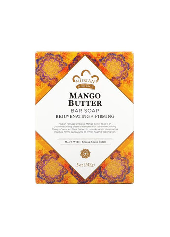 Опис Омолоджує та зміцнює Містить... олію ши та какао-масло Сертифікат B Corporation Етичний продукт Інгредієнти придбані з дотриманням принципів справедливої торгівлі Екологічно чисте виробництво Не тестується на тваринах Екологічно безпечна пальмова олія, сертифікована RSPO Мило з олією тропічного манго від Nubian Heritage — це ультразволожувальнй, не подразнюючий засіб, що поєднується з багатими та живильними маслами манго, какао та ши, забезпечує зволоження для пружної, здорової на вигляд шкіри. Складний початок Nubian Heritage — витвір двох нью-йоркських вуличних торговців. У 1992 р. безробітні випускники коледжу Річ і Ньєма обрали своєю справою виробництво натуральних продуктів класу люкс за традиційними африканськими рецептами з органічних інгредієнтів, придбаних за принципами справедливої торгівлі. Сьогодні Nubian Heritage пропонує сотні продуктів, що надихаються давніми філософіями зцілення з усього світу й виготовляються за традиційними рецептами. Хоча продукція Nubian Heritage більше не виготовляється у ваннах, інші складові процесу мало змінилися: компанія, як і раніше, виробляє власну продукцію, усе ще використовує органічні інгредієнти, придбані за принципами справедливої торгівлі, і надалі вкладає кошти в торгівлю в спільнотах та громадах. Спадщина Корінне населення тропічних лісів здавна використовували олію манго, щоб зволожувати шкіру та створювати захисний зволожувальний бар'єр від несприятливих факторів навколишнього середовища. Кісточки плодів манго, яке вперше було вирощене на Індійському субконтиненті й у Східній Азії більше 4000 років тому, шануються за їх зволожувальні властивості. Олія манго, насичене вітаміном Е, каротиноїдами й антиоксидантами, забезпечує зволоження, еластичність і омолодження, роблячи шкіру більш пружною і здоровою. Інші інгредієнти Пальмітат натрію, пальмовий кернелат натрію, вода, гліцерин, ароматизатор (парфумерна композиція), масло ши (Butyrospermum parkii)*♥, глюконат натрію, пальмова кислота, хлорид натрію, цедра апельсина (Citrus aurantium dulcis), пальмоядрова кислота, борошно із ядер органічної кукурудзи (Zea mays), мед із аскорбіновою кислотою, масло з насіння манго (Mangifera indica), олія з насіння какао (Theobroma cacao)*, діоксид титану (CI 77891), оксиди заліза (CI 77492), оксиди заліза (CI 77499). * Сертифікований органічний інгредієнт. ♥ Інгредієнти, придбані на основі принципів справедливої торгівлі.