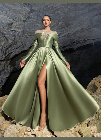 Колір Оливковий / Довжина виробу Максі / Стиль Вечірній