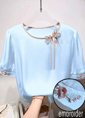 Колір Блакитний / Стиль Кежуал / Візерунок Однотонний / Фасон рукава Ліхтарик