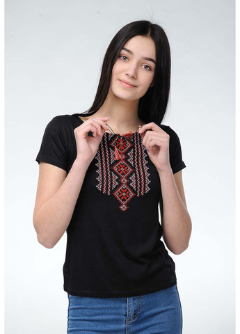 Характеристики: Довжина рукава: короткий рукав Колір тканини: чорний Матеріал: стрейч кулір Склад тканини: 98% бавовна, 2% віскоза Догляд: ручне прання машинне прання “делікатне” при температурі до 40 °C прасування з відпарювання при середній температурі до 150 °C хімічна чистка заборонена відбілювання заборонено Особливості та характеристики: м’який трикотажний матеріал забезпечує комфорт у повсякденному носінні, добре тягнеться та не деформується; короткий рукав і класичний крій роблять футболку універсальною та легко поєднуються з джинсами, спідницями або шортами; вишивка на грудях виконана у сучасному геометричному стилі — інтерпретація українського тризубця; чіткі лінії та гострі форми додають динаміки й підкреслюють силу образу; кольори вишивки: синій — символ неба, істини та духовності; жовтий — знак тепла, врожаю та світла; сучасний дизайн поєднує традиції української символіки з актуальним модним виконанням. Ця вишиванка-футболка стане ідеальним вибором для активних і стильних жінок, які цінують українські традиції у сучасному та зручному форматі.