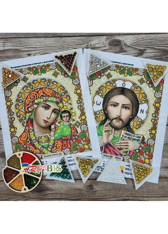 Благовест, набір для вишивки бісером ЖК-4005 ЖК-4006 Вінчальні ікони Пресвята Богородиця Казанська та Господь Вседержитель у перлах та кристалах Формат: А4 Розмір (см): ~21*25 2 шт. Тканина: габардин Кількість кольорів: 7 + 8 + декоративні елементи Приблизна кількість бісеру (шт.): 10964 Малюнок на габардині для часткової вишивки бісером. Набір складається з двох ікон на окремих полотнах. Техніка вишивки: лінійна вишивка бісером (можна використовувати стебловий шов, рядковий шов або арочний шов) В набір для вишивки ікони бісером входить: схема для часткової вишивки бісером ікони; чеський бісер Preciosa, 1-го гатунку з запасом; декоративні елементи різних діаметрів; інструкція по вишивці бісером; бісерна нитка; бісерні голки. Інструкція для вишивки додається до набору. Рамка та органайзери для бісеру до набору не входять. На фото приклад вишитих ікон по ключу Олесі ARHIBIS. Вишиті ікони з цієї серії: Подивіться відеоогляд схем для вишивки бісером ікон від ТМ Благовест серії ЖК: Кольори бісеру та схем на фото можуть відрізнятися від реальних залежно від налаштувань яскравості екрану вашого пристрою. Кольори бісеру та схем на фото можуть відрізнятися від реальних залежно від налаштувань яскравості екрану вашого пристрою. Виробник залишає за собою право змінювати комплектацію товару, зовнішній вигляд елементів, кольорову гаму без попереднього повідомлення.