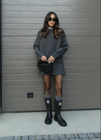 Колір Графітовий / Фасон Спідничний / Стиль Діловий, Повсякденний, Кежуал, Денім, Вечірній / Візерунок Однотонний / Матеріал Ангора