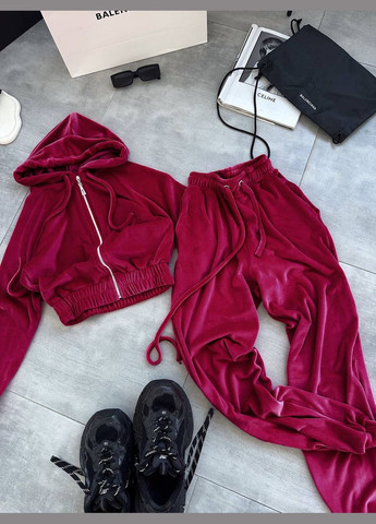 Перший елемент – базовий топ лаконічного дизайну з м’якими, акуратними лініями. Він комфортно облягає фігуру, не сковуючи рухів, і виглядає стильно як самостійно, так і під кофтою. Другий – штани прямого крою з високою посадкою, які візуально подовжують силует і створюють відчуття легкості. Завдяки широкій еластичній резинці на талії вони зручно фіксуються, підлаштовуючись під будь-яку фігуру, а м’яка тканина забезпечує свободу рухів. Третій – кофта на блискавці з капюшоном і довгим рукавом, яка додає образу спортивної нотки та захищає від прохолоди.