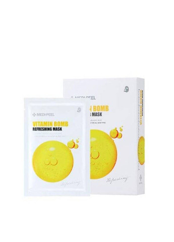 Тканинна маска MEDI-PEEL Vitamin Bomb Refreshing Mask – підвищує тонус шкіри, освіжає та вирівнює тон обличчя. Вона насичує дерму вітамінним комплексом, підвищує її пружність і глибоко зволожує, позбавляючи лущення. В основі просочення такі активні компоненти , як: ніацинамід (10,000 ppm) - освітлює пігментацію та сліди від пост акне, підвищує тонус шкіри, вирівнює рельєф та тон дерми, запобігає втраті вологи, прискорює мікроциркуляцію крові, зміцнює судини, роботу сальних залоз ; 7 видів гіалуронової кислоти – надають потужне зволоження всіх шарів дерми, розгладжують зморшки та перешкоджають їх появі, позбавляють лущення, прискорюють процес регенерації та самооновлення шкіри. Вітамін C - один із найсильніших антиоксидантів, бореться з пігментацією, захищає шкіру від ультрафіолету, згладжує рельєф і вирівнює тон дерми, має протизапальну дію і запобігає появі висипань. Маска для обличчя від бренду MEDI-PEEL має зручну тканинну основу, яка щільно прилягає до обличчя, роблячи використання дуже комфортним. Ви можете придбати її в нашому інтернет-магазині , щоб освіжити, освітлити, глибоко зволожити і наситити вітамінами дерму, для підтримки краси і здоровя вашої шкіри. Спосіб застосування : на очищену шкіру після використання тонера щільно прикладіть маску, після 15-20 хвилин - зніміть, залишки есенції розподіліть по обличчю.]]