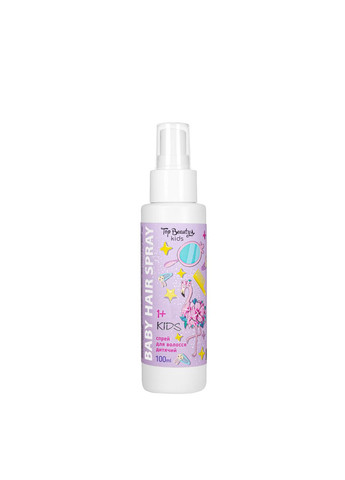 Cпрей-кондиціонер для легкого розчісування волосся для дітей від 1 року Top Beauty Kids Baby Hair Spray Дитячий спрей-кондиціонер від українського бренду Top Beauty полегшує розчісування волосся, вирівнює його та запобігає сплутуванню та утворенню вузлів. Засіб враховує особливості скальпу голови дітей віком від 1 року, тому він безпечний і ефективний у застосуванні з раннього віку. Активні компоненти спрею для легкого розчісування волосся дитини Top Beauty Baby Hair Spray 1+: гідролізат протеїнів кератину – кондиціонує та забезпечує антистатичний ефект, чим забезпечує швидке розчісування неслухняного дитячого волосся; вітамін Д-пантенол – робить локони гладкими, надає здорового блиску, не обтяжує пасма; екстракт зеленого чаю – містить корисні амінокислоти та вітаміни, попереджає руйнування колагену, покращує стан дитячого волосся; екстракт кропиви – використовується для м'якості та здорового блиску волосся. Дитячий спрей для волосся Top Beauty має приємний цукерковий аромат, тому стане улюбленим б'юті-засобом у косметичці малюка. Спосіб застосування: Розпиліть спрей-кондиціонер на вологе чисте волосся дитини. Чи не змивайте. Об'єм: 100 мл