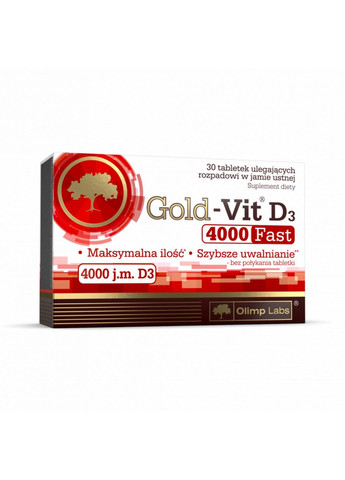 OLIMP Gold-Vit D3 4000 fast - добавка холекальциферолу (вітаміну D3) у формі таблеток, що легко розсмоктуються. Розроблена спеціально для тих, хто не любить ковтати пігулки та капсули. Особливості: Допомагає підтримувати здоров `я кісток та зубів Сприяє підтримці нормального рівня кальцію в крові Підтримує правильне засвоєння та використання кальцію та фосфору Позитивно впливає на правильне функціонування м `язів Допомагає у правильному функціонуванні імунної системи Вітамін D3 забезпечує правильне засвоєння кальцію, зміцнює кістки та зуби, підвищує імунітет. Також він покращує скорочуваність м `язів та допомагає підтримувати правильне співвідношення кальцію та фосфору в крові. Як приймати: Приймати 1/2 таблетки один раз на день під час їди, після їди чи інакше після консультації з лікарем. Не вживайте інших препаратів, що містять вітамін D. Вміст елементів у 1й порції 1/2 таблетки Вітамін D (D3) 50 мкг Інгредієнти Наповнювач – маніт; холекальциферол – віт. D, носій - полівінілполіпіролідон; наповнювач – целюлоза; регулятор кислотності – лимонна кислота; наповнювач – сорбіти; ароматизатори, антинаглядачі - магнієві солі жирних кислот, діоксид кремнію; глазувальник - сополімер полівінілпіролідону та вінілацетату; підсолоджувач - сукралоза Виробник: Olimp; Форма випуску: Таблетки; Кількість в упаковці, шт: 90; Кількість порцій, шт: 360; Зміст порції: 1/2 таблетки; Відокремлені вітаміни: Вітамін D; Пол: Жіночий, Чоловічий; Вікова категорія: Дорослі; Країна виробника: Польща; Призначення: Для імунної системи