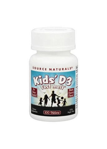 Вітамін D-3 Kids від Source Naturals — це зручні швидкорозчинні таблетки з чорновишневим смаком, розроблені спеціально для дітей. Вітамін D3 у формі холекальциферолу підтримує щоденне надходження цього важливого нутрієнта в організм дитини, особливо в умовах обмеженого сонячного впливу. Переваги продукту: Містить 400 МО вітаміну D3 у формі холекальциферолу — природна форма, що добре засвоюється дитячим організмом. Смачні таблетки зі смаком чорної вишні — приємні для дітей, легко розсмоктуються без потреби в запиванні. Зручна форма прийому — 100 таблеток у банці, вистачає на тривалий період. Без штучних барвників, глютену, сої, молочних компонентів і консервантів. Склад на 1 таблетку: Вітамін D3 (у формі холекальциферолу) — 10 мкг (400 МО) Допоміжні інгредієнти: натуральний ароматизатор чорної вишні, маніт, лактоза (з молока), кроскармелоза натрію, стеаринова кислота, кремнію діоксид, мальтодекстрин, стеарат магнію (рослинного походження). Рекомендації щодо застосування: дітям від 4 років приймати по 1 таблетці на день. Таблетку можна розсмоктати або розжувати. Форма випуску: 100 швидкорозчинних таблеток. Не є лікарським засобом.