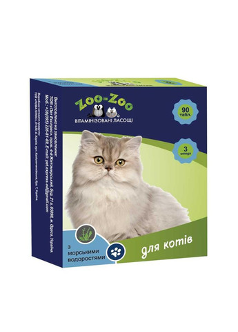 Вітамінізовані ласощі ZOO-ZOO - це чудовий спосіб для поповнення організму вашого вихованця корисними вітамінами та поживними речовинами та покращення його настрою. Регулярне вживання вітамінізованих ласощів ZOO-ZOO (особливо під час годування натуралкою) сприяє покращенню стану вовни та шкіри, зміцненню імунітету. Вітамінізовані ласощі ZOO-ZOO виготовлені на основі рослинних компонентів у процесі кріодеструкції. Принцип цієї унікальної технології полягає у розкритті клітинної мембрани рослинної клітини під впливом низьких температур (-196°С), що сприяє збереженню максимальної кількості біологічно активних речовин і практично виключає руйнування Склад: Біотин Гранат Хлорелла Пробіотики Омега-5 кислоти Екстракт харчових дріжджів Вітамінно-мінеральний комплекс В 1 таблетці Вітамінізованих ласощів для котів і кішок ZOO-ZOO міститься: протеїну не менше 12%, жиру не менше 1%, кальцію не менше 0,4%, фосфору не менше 0,5%, Омега-3 не менше 3 мг, біотину 5 мкг. Склад:БіотинГранатХлореллаПробіотикиОмега-5 кислотиЕкстракт харчових дріжджівВітамінно-мінеральний комплекс В 1 таблетці Вітамінізованих ласощів для котів і кішок ZOO-ZOO міститься: протеїну не менше 12%, жиру не менше 1%, кальцію не менше 0,4%, фосфору не менше 0,5%, Омега-3 не менше 3 мг, біотину 5 мкг.