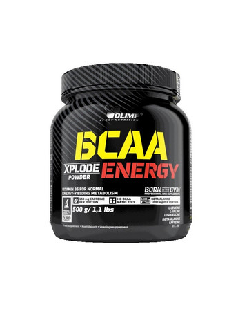 Olimp BCAA Xplode Energy – ефективний комплекс на основі ВСАА, кофеїну, вітаміну B6 та бета-аланіну, який є чудовим доповненням до та під час фізичної активності. Даний продукт націлений на підтримку належних параметрів витривалості, затримує момент фізичної та психічної втоми. спортсмена.Спосіб застосування та дози: Приймати 1-2 порції на день - до їжі та/або до тренування. Додайте 1 порцію продукту (6,6 г) у 250 мл води. Використовуйте відразу після приготування.Вміст елементів у 1й порціїКалорії 26 ккалЖири - насичені Вуглеводи - цукор Білок 4,2 гСіль 0,04 гВітамін В6 1,4 мгБета-аланін 1 гКофеїн 150 мгАмінокислоти з розгалуженим ланцюгом BCAA 4 г L-лейцин 2 гL-валін 1 гL-ізолейцин 1 г
