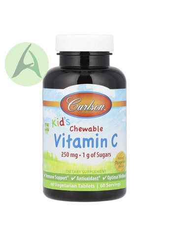 Carlson, жувальний вітамін C, натуральний мандарин, 250 мг, 60 вегетаріанських таблеток Опис Дієтична добавка Підтримка імунітету Антиоксидант Гарне самопочуття 1 г цукру Без глютену Без казеїну та молока Без штучних консервантів Якість і ефективність гарантовані Підприємство підконтрольне Управлінню з контролю якості харчових продуктів і лікарських засобів США Carlson: харчові добавки найвищої якості з 1965 року. Дитячий жувальний вітамін C — це швидкий і простий спосіб підтримувати здоров’я імунної системи дітей. Кожна вегетаріанська таблетка зі смаком мандарину містить 250 мг вітаміну C і має м’який вплив на зуби та шлунок. Рекомендації із застосування Діти віком від 4 років: приймати одну таблетку на день. Дорослим: приймати одну таблетку 1–4 рази на день. Інші інгредієнти Фруктоза, сахароза, манітол, мікрокристалічна целюлоза, стеаринова кислота, лимонна кислота, натуральні ароматизатори, діоксид кремнію, стеарат магнію. Попередження Зберігати баночку щільно закритою в прохолодному сухому місці. Поживна цінність Розмір порції: 1 таблетка Порцій в упаковці: 60 Кількість в 1 таблетці % від добової норми Калорії 10 Усього вуглеводів 2 г < 1 %** Усього цукру 1 г † Містить 1 г доданого цукру 2 %** Цукрових спиртів 0 г † Вітамін С (у вигляді аскорбінової кислоти) 250 мг 278 % Вітамін С (у вигляді аскорбату кальцію) 28 мг 2 % ** Відсоток від добової норми за умови споживання 2000 калорій на день. † Добову норму не визначено.
