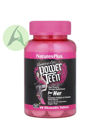 NaturesPlus, Source of Life, Power Teen, добавка для дівчаток-підлітків, без цукру, з натуральним смаком лісових ягід, 60 жувальних таблеток