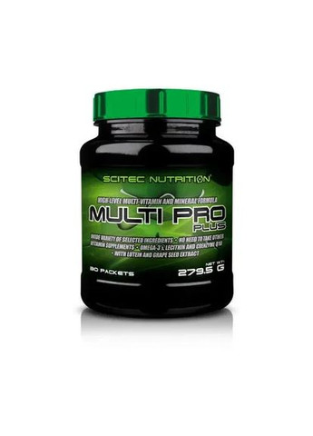 ОПИС Multi Pro Plus - це мульти-вітамінна і мінеральна формула високого рівня в пакетиках з декількох таблеток/капсул, яка ґрунтується на мульти-вітамінних капсулах Mega Daily One Plus. Mega Daily One Plus - це передова мульти-вітамінна і мінеральна формула, яка містить 25 інгредієнтів сама по собі (плюс доповнення в Multi Pro Plus). Ця формула пропонує високе дозування вітамінів групи В і вітаміну С, плюс необхідні мінерали, включно з магнієм, селеном і цинком. Вітамін С сприяє правильній роботі імунної та нервової систем, а також зменшенню втоми і стомлюваності. Це також допомагає підтримувати нормальну роботу імунної системи під час і після інтенсивного тренування (позитивного ефекту можна досягти, якщо приймати 200 мг на день на додаток до рекомендованого добового споживання вітаміну С). Вітамін В2 сприяє підтримці зору і червоних кров'яних клітин. Фолієва кислота сприяє правильному синтезу амінокислот. Multi Pro Plus містить вітамін D, який сприяє підтримці роботи м'язової та імунної систем, і засвоєнню кальцію та фосфору. Цинк сприяє фертильності, відтворенню і підтримці рівня тестостерону, а також правильному обміну речовин. Магій сприяє роботі нервової системи: синапси і м'язові скорочення, включно з серцевим м'язом, а також синтезу білка і підтримці здоров'я кісток і зубів. Селен сприяє сперматогенезу, роботі щитоподібної залози та підтримці здоров'я волосся і нігтів. У Multi Pro Plus додано гелеві капсули омега-3 і лецитину, коензим Q10, багатий на поліфеноли екстракт виноградних кісточок, а також посилено лютеїном. SCITEC представляє вітамінно-мінеральний комплекс, розроблений спеціально для атлетів, які відчувають серйозні навантаження на тренуваннях і відчувають гостру потребу в підвищених дозах низки вітамінів і мінералів. Рекомендації щодо застосування: По 1 пакетику на день СКЛАД Склад на порцію - 1 пакет: Вітамін А 2249 мкг Вітамін В1 (Тіамін) 39 мг Вітамін В2 (Рибофлавін) 48 мг Вітамін B3 (Ніацин) 50 мг Вітамін B5 47 мг Вітамін В6 25 мг Вітамін В7 (Біотин) 184 мкг Вітамін В9 (Фолієва кислота) 366 мкг Вітамін В12 95 мкг Вітамін C 250 мг Вітамін D 12 мкг Вітамін Е 84 мг Кальцій 693 мг Магній 337 мг Залізо 13 мг Цинк 10 мг Марганець 4,7 мг Мідь 1 мг Йод 120 мкг Селен 48 мкг Молібден 7,5 мкг Екстракт виноградних кісточок 110 мг Рутин 25 мг Гесперидин 11 мг Інозитол 10 мг Холін 10 мг Лютеїн 5 мг Риб'ячий жир 1000 мг Соєвий Лецитин 1200 мг Інгредієнти: 2 мультивітамінні капсули: карбонат кальцію, DL-альфа-токоферил ацетат, аскорбінова кислота, магнію оксид, піридоксину HCl, кальцію D-пантотенат, тіаміну мононітрат, рибофлавін, нікотинамід, заліза фумарат, рутин, цинку сульфату моногідрат, холін бітартрат, вітаміну A ацетат, D-біотин, магнію стеарат, марганцю сульфат моногідрат, селеніт натрію, гесперидин, інозитол, ціанокобаламін, міді II сульфат пентагідрат, холекальциферол, фолієва кислота, йодид калію, натрію молібдату дигідрат, желатин. Капсула вітаміну С: аскорбінова кислота, стеарат магнію, желатин. Кальцій-магній: устрична раковина, кальцію глюконат, магнію оксид, целюлоза (рослинна), кросскармелоза, рослинний стеарат магнію, діоксид титану, целюлоза. Екстра-капсула: аскорбінова кислота, екстракт виноградних кісточок, лютеїн 5%, порошок коензим Q10, желатин. Гелева капсула риб'ячого жиру: жири омега-3 і натуральні тригліцериди з риб'ячого жиру (анчоусові, скумбрія, сардинові), желатин, рослинний гліцерин, суміш натуральних то