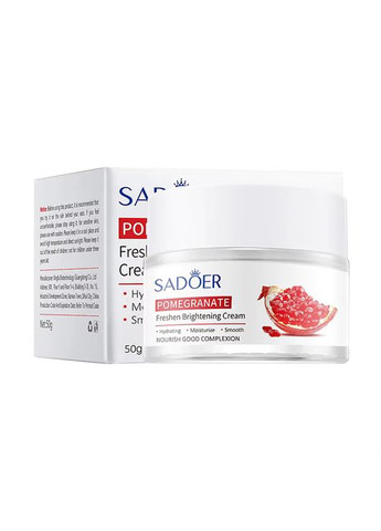 Відчуйте неймовірну свіжість і сяйво з кремом для обличчя Sadoer Pomegranate Fresh! Цей диво-крем, збагачений екстрактом граната, ідеально підходить для щоденного догляду за шкірою будь-якого типу, роблячи її зволоженою, м'якою та помітно більш рівною. Подаруйте вашій шкірі потужний заряд вітамінів та захист від зовнішніх факторів, насолоджуючись свіжим та здоровим кольором обличчя вранці та ввечері. Купуйте зараз і перетворите свою шкіру! Бренд: Sadoer Тип засобу: Крем Косметика для: Обличчя Тип шкіри: Всі типи Призначення: Вітамінізує, Виявляє захисну та протизапальну дію, Розгладжує та освіжає колір обличчя, Зволожує та пом'якшує Вага або об'єм: 50 г