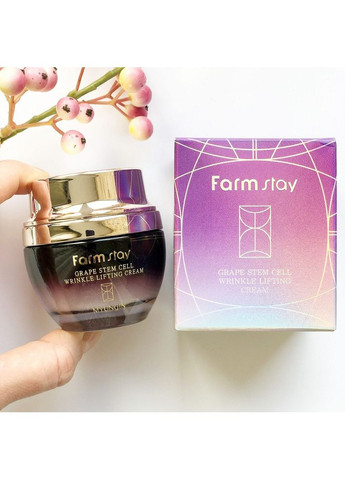 Крем для інтенсивного омолодження обличчя з ліфтинг ефектом і стовбуровими клітинами винограду FarmStay Grape Stem Cell Wrinkle Lifting Cream Крем-ліфтинг проти зморщок FarmStay відновлює пружність, вирівнює тон шкіри, надає інтенсивний догляд проти утворення нових зморщок. Розроблено для зрілої та вікової шкіри, з антивіковими інгредієнтами, фіто-стовбуровими клітинами винограду й аденозином, глибоко проникає в шкіру і сприяє поліпшенню тонусу шкіри, володіє ліфтинг ефектом, відновлює і додає шкірі пружність і еластичність. Стовбурові клітини винограду згідно з численними дослідженнями можуть активізувати ген SIRT-1, який ще називають геном довголіття. Крім того, стовбурові клітини винограду містять незамінні антиоксиданти, які захищають стовбурові та інші клітини, надають відновлювальну дію на шкіру. Екстракт ківі тонізує, живить і омолоджує шкіру. Він робить її пружною і гладенькою, прибирає зморшки, нерівності, наслідки акне, покращує колір обличчя. Ківі - це чудовий антиоксидант. Гороховий білок лікує прищі, акне, прибирає пігментні плями. Аденозин прискорює регенерацію клітин шкіри, регулює окислювально-відновні процеси в клітинах шкіри, уповільнює процеси старіння, зморшки стають менш глибокими, шкіра набуває еластичність і пружність. Гіалуронова кислота, зберігаючи водний баланс, підтримує тонус, робить овал обличчя рівнішим, має ліфтинг ефект. Екстракти яблука і грейпфрута вітамінізують, тонізують шкіру, забезпечують її вітамінами. Олія ши майже на 80% складається з тригліцеридів. Вона є активним джерелом вітамінів Е, F і А. Це універсальна олія з пом'якшувальними, зволожувальними та регенеративними властивостями. Уповільнює старіння шкіри, розгладжує зморшки. Спосіб застосування: легкими масажними рухами нанесіть необхідну кількість крему на чисту шкіру обличчя і шиї. Крем можна використовувати як основу під макіяж. Вага: 50 г.