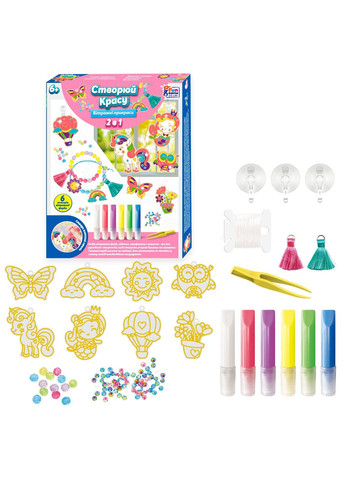 Новий набір для творчості від "TK Group" дає юним майстриням можливість не тільки опанувати різноманітні техніки створення прикрас і аксесуарів, а й втілювати у життя власні дизайнерські задуми. Тут знайдуться різноманітні намистинки для плетіння браслетів і фігурні основи брелків, які потрібно декорувати яскравими вітражними фарбами. Набір забезпечить багато годин цікавої гри та неймовірні враження від отриманого результату. Це надзвичайний простір для втілення креативних ідей дитини та унікальна можливість розкриття індивідуальних рис характеру маленької рукодільниці в процесі створення прикрас. Особливості: - у наборі представлене широке розмаїття намистин різних кольорів та фактур; - спеціальна нитка для плетіння; - намистини виготовлені з якісного пластику; - 8 кольорів вітражних фарб; - 8 основ для створення брелків; - вікова категорія - 6+; - креативні ігрові набори допомагають розкривати та культивувати творчі здібності маленької особистості, з раннього віку прищеплюючи дитині відчуття смаку, гармонії кольорів та любов до прекрасного.