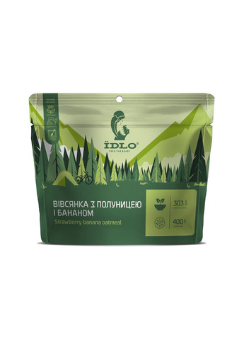 Маса нетто: 90 г Маса порції: 400 г Енергетична цінність: 75,7 / 303,0 Ккал Білки: 2,3/ 9,0 г Жири: 1,3 / 5,0 г Вуглеводи: 14,3 / 57,0 г Термін придатності: 2 роки З гордістю виготовлено в Україні методом сублімації та інфрачервоної сушки натуральних інгредієнтів. Вівсянка з полуницею і бананами – це ідеальний сніданок для туристів, мандрівників або тих, хто шукає швидку, але поживну страву для енергійного початку дня. Ця страва поєднує ситні вівсяні пластівці з сублімованими шматочками полуниці та бананів, що надають їй насичений смак і забезпечують організм необхідними вітамінами та мінералами. Це комбо вівсянки з фруктами надовго подарує відчуття ситості та готовність до нових звершень сьогодні. Передові технології сублімації та інфрачервоної сушки, саме вони допомагають зберегти максимальну користь та смак продуктів. Вівсянку з полуницею та бананами приготувати дуже просто – достатньо лиш залити окропом, перемішати вміст, зачекати 10 хвилин, і поживний сніданок готовий! Метод приготування: відкрити пакет, дістати поглинач, залити страву окропом до рівня 3 на лінійці всередині, ретельно перемішати, закрити замок на пакеті та зачекати протягом 10 хвилин. За бажанням долити окріп. Не панікувати, якщо “пощастило” спробувати поглинач на смак, це абсолютно безпечно.