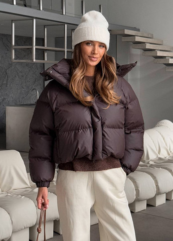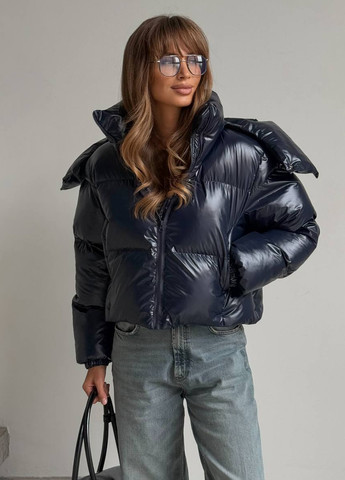 Модна та стильна куртка з коміром – стійкою та капюшоном, прямого крою, виконана із щільної тканини кольору «антрацит».