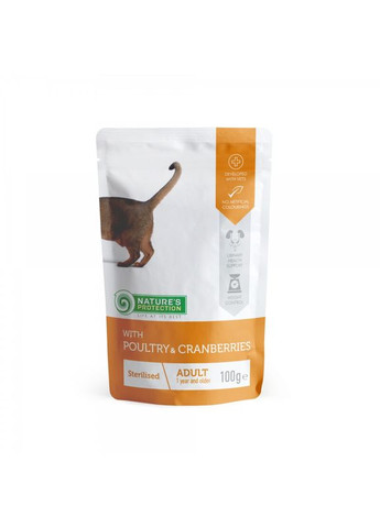 Optimeal Adult Cats Sterilised Salmon & Blueberries in jelly Повнораціонний вологий корм у вигляді апетитних шматочків з лососем і чорницею у желе для стерилізованих та кастрованих дорослих котів. Це спеціально розроблений раціон для підтримання здоров’я сечової системи в стерилізованих або кастрованих котів, а також для підтримання їхньої оптимальної маси тіла. Збалансований вміст мінеральних речовин зберігає здоров’я сечовивідних шляхів завдяки утворенню сечі з низькою концентрацією кристалів і підтриманню оптимального pH Містить 82% протеїну тваринного походження, зокрема м’ясо лосося, курятину та яловичину у вигляді шматочків, завдяки чому забезпечує улюбленця високоякісним легкозасвоюваним білком і сприяє здоровому травленню Містить вітаміни D3, Е, С, вітаміни групи B, цинк, селен, йод та інші корисні мікроелементи, які комплексно зміцнюють та захищають організм улюбленця Біотин і ненасичені жирні кислоти Омега-3 й Омега-6, що входять до складу, допомагають знизити ризик виникнення дерматитів, зміцнити нервову систему, а також поліпшити якість шкіри та шерсті кота DL-метіонін сприяє підтриманню слабокислого рівня pH сечі та є хорошою профілактикою утворення каменів, а L-карнітин забезпечує транспортну функцію для жирних кислот, нормалізує білковий та жировий обміни, а також покращує функцію серця. Збагачений таурином — життєво важливою для котів амінокислотою, що підтримує їхній зір і серцево-судинну систему. Містить комплекс для зміцнення імунітету Immunity Support Mix з пребіотиками нового покоління Actigen, бета-глюканами, ягодами та корисними травами Виготовлено під контролем ветеринарів за технологією швейцарської компанії Swiss Pet Nutrition Group З високим вмістом очищеної води Склад: 68% м'яса та продуктів тваринного походження у шматочках (зокрема 13% куряча печінка, 9% куряче серце, 8% курки, 8% яловиче серце тощо), риба та рибні продукти (9% лосося у шматочках), екстракти рослинних білків, фрукти (1% чорниця, 0,05% журавлина), мінерали, продукти рослинного походження (клітковина бурякова, чорнобривці (джерело лютеїну) 0,01%, корінь лопуха, корінь алтеї, квіти ромашки 0,01%, кропива 0,01%, чебрець 0,01%), злаки, олії та жири (олія лосося, олія огірочника), цукри, MOS (пребіотик - мананолігосахариди) 0,01%, бета-1,3/1,6-глюкан 0,01%. Добавки на 1 кг: вітамін D3 105 МО, вітамін Е 70 мг, вітамін C 28 мг, вітамін B5 1,47 мг, вітамін В1 1,25 мг, фолієва кислота 0,35 мг, вітамін B6 0,2 мг, біотин 0,02 мг, L-карнітин 40 мг, таурин 354,22 мг, DL-метіонін 600 мг, цинк 1,26 мг, марганець 0,94 мг, йод 0,19 мг, селен 0,06 мкг