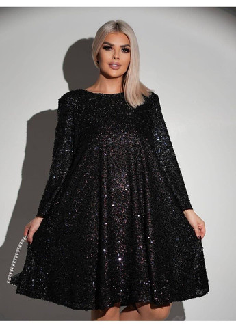 Жіноча святкова сукня міді довжини, створена для особливих подій. Виготовлена з креп-дайвінгу, зверху прикрашена блискучими паєтками на рукавах і грудях. Довгий суцільнокроєний рукав та круглий виріз забезпечують елегантний вигляд. Сукня приталеного крою, без кишень. Ідеальний вибір для святкування, корпоративу або вечірки. 50 р-р: ОГ 104, ОТ 100, ОС 110, довжина сукні 95, довжина рукава 54 52 р-р: ОГ 108, ОТ 104, ОС 114, довжина сукні 96, довжина рукава 56 54 р-р: ОГ 112, ОТ 108, ОС 118, довжина сукні 98, довжина рукава 58 56 р-р: ОГ 116, ОТ 112, ОС 122, довжина сукні 100, довжина рукава 58 Виміри робились по верхній частині готового виробу. ОГ — об'єм грудей. ОТ — об'єм талії. ОС — об'єм стегон.