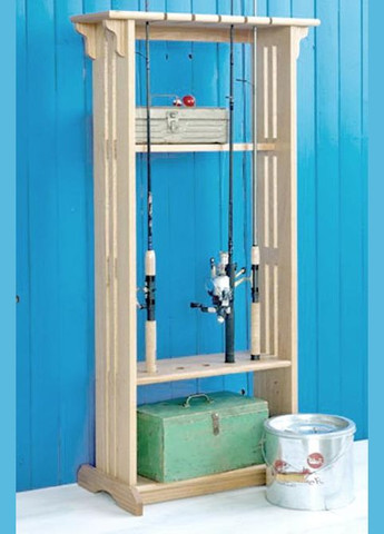 Розміри зовнішні: ширина - 80см, висота - 80см, глибина - 10см. Кількість місць під вудки 11шт. Покриття: акриловий лак.