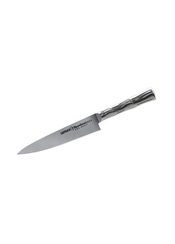 ТЕХНІЧНІ ХАРАКТЕРИСТИКИ Артикул: SBL-0220 Назва серії: Blacksmith Призначення: набір Довжина леза, мм: 162, 168, 182 Вага, гр .: 639 Матеріал клинка: нержавіюча сталь Марка матеріалу клинка: AUS-8 Твердість, HRc: 58 Покриття клинка: без покриття Фініш клинка: Hammered Заточка клинка: Shark Тип ріжучої кромки: рівна Форма заточки: симетрична Матеріал рукоятки: Micarta Колір рукояті: чорний Матеріал приладів: нержавіюча сталь Вага з упаковкою, гр .: 1026 ПОВНИЙ ОПИС Найнеобхідніші ножі в красивій подарунковій упаковці. У набір входять: універсальний ніж 162 мм, ніж для овочів Накір 168 мм і ніж Сантоку 182 мм. Японська нержавіюча cталь AUS-8, з якої виготовлені ножі, має гарну корозійну стійкість, відмінну стійкість ріжучої кромки, легко полірується і шліфується. Незвичайна фінішна обробка лез імітує сліди ковальського молота, створюючи під час різу повітряну подушку, завдяки чому виключається налипання скибочок продуктів і зменшуються зусилля, прикладені при нарізці. Рукояті ножів з чорної мікарти дуже зручно лежать в руці, не бояться вологи, не вбирають запахи, не ковзають в долоні. Ножі "Blacksmith" - це оригінальне дизайнерське рішення і чудовий подарунок любителям японських традицій.