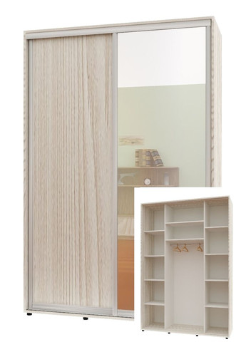 ТОВАР ПІД ЗАМОВЛЕННЯ. ТЕРМІН ВИГОТОВЛЕННЯ 2 ТИЖНІ • Корпус і фасад виробу виготовлений із ламінованого ДСП завтовшки 16 мм. • Крайка зовнішніх деталей 2 мм, полиці, а також ящики 0.5 мм. Алюмінієвий профіль. • Шафи спроєктовані так, щоб забезпечити міцну, безпечну та стійку конструкцію. Компоненти розсувної системи та фурнітура проходять перевірку на міцність і довговічність. • Завдяки універсальній заводській присадці під час встановлення ви можете змінити розташування внутрішнього наповнення — змінити його дзеркально. • Шафа встановлюється на регульовані ніжки, які дають змогу виставити шафу рівно. • У комплекті передбачені стоєві, дах, дно, внутрішнє наповнення (полиці, труби), напрямні, двері та комплект фурнітури. • Шафа відвантажується в розібраному вигляді заводській упаковці.