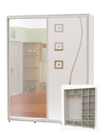 ТОВАР ПІД ЗАМОВЛЕННЯ. ТЕРМІН ВИГОТОВЛЕННЯ 2 ТИЖНІ • Корпус і фасад виробу виготовлений із ламінованого ДСП завтовшки 16 мм. • Крайка зовнішніх деталей 2 мм, полиці, а також ящики 0.5 мм. Алюмінієвий профіль. • Шафи спроєктовані так, щоб забезпечити міцну, безпечну та стійку конструкцію. Компоненти розсувної системи та фурнітура проходять перевірку на міцність і довговічність. • Завдяки універсальній заводській присадці під час встановлення ви можете змінити розташування внутрішнього наповнення — змінити його дзеркально. • Шафа встановлюється на регульовані ніжки, які дають змогу виставити шафу рівно. • У комплекті передбачені стоєві, дах, дно, внутрішнє наповнення (полиці, труби), напрямні, двері та комплект фурнітури. • Шафа відвантажується в розібраному вигляді заводській упаковці.