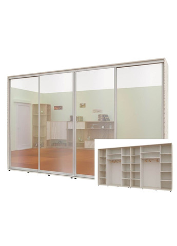 ТОВАР ПІД ЗАМОВЛЕННЯ. ТЕРМІН ВИГОТОВЛЕННЯ 2 ТИЖНІ • Корпус і фасад виробу виготовлений із ламінованого ДСП завтовшки 16 мм. • Крайка зовнішніх деталей 2 мм, полиці, а також ящики 0.5 мм. Алюмінієвий профіль. • Шафи спроєктовані так, щоб забезпечити міцну, безпечну та стійку конструкцію. Компоненти розсувної системи та фурнітура проходять перевірку на міцність і довговічність. • Завдяки універсальній заводській присадці під час встановлення ви можете змінити розташування внутрішнього наповнення — змінити його дзеркально. • Шафа встановлюється на регульовані ніжки, які дають змогу виставити шафу рівно. • У комплекті передбачені стоєві, дах, дно, внутрішнє наповнення (полиці, труби), напрямні, двері та комплект фурнітури. • Шафа відвантажується в розібраному вигляді заводській упаковці.