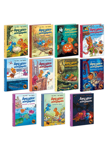 Друзяки-динозаврики. Як гуляли Гелловін Цьогоріч Расмус і Тіммі вирішили як слід відсвяткувати Гелловін. Друзі вдягли особливі костюми, аби налякати інших динозавриків. Проте Расмус уже не в захваті від цієї ідеї: всі у страшних костюмах і масках… бррр. До того ж Расмусові не до вподоби сюрпризи та розіграші, які чекають на кожному кроці. Одначе не лише він цього дня трохи налякається… Друзяки-динозаврики. Різдвяний подарунок На Різдво дідусь Троодон надіслав Тіммі великий і таємничий подарунок-сюрприз. І як на зло, посилка й листоноша… загубилися дорогою! Невже Расмус і Тіммі не побачать подарунка до Різдва? Друзі не звикли так легко здаватися, тому вирушають на пошуки листоноші до Болотяного лісу. Тільки от кажуть, тими місцями блукає велетенський хижий динозавр… Друзяки-динозаврики. Страшний крокодил Сьогодні Расмус прокинувся і зрозумів: настав найневезучіший день у році! Динозаврик точно або наб’є ґулю на лобі, або понаставляє собі синців щойно вставши з ліжка. Ба більше, на Расмуса точно чекають пригоди… в Болотяному лісі! Його друг Тіммі чув, що там виросла щаслива конюшина з чотирма листочками. І вона може врятувати цей день! Однак… у тому ж лісі щойно бачили величезного крокодила. Тож тепер Расмусові та Тіммі знадобиться неабияка удача! Друзяки-динозаврики. Гігантський кальмар Одного разу тато Рекс розповів Расмусові та Тіммі дивовижну історію. Виявляються, в Темній бухті є старий затонулий корабель із цілою купою скарбів на борту! Але їх і вдень, і вночі охороняє гігантський кальмар. Ще ніхто не наважився зустрітися з ним віч-на-віч та забрати коштровності. Добре, що в татка Рекса без діла лежить міцний пліт. Друзі-динозаврики позичать його лише на хвилинку, і… почнеться пригода! Друзяки-динозаврики. Яйце Одного разу рано вранці Расмуса Рекса рішуче розбудив його друг Тіммі Троодон. У Тіммі великі новини: ось-ось проклюнеться яйце його мами і в нього буде братик! Друзі вирішують піти навпростець черезм Болотяний ліс, щоб встигнути до подіїї. Чи це гарна ідея? По дорозі вони зустрічають страшенних динозаврів. А коли вони нарешті виходять з лісу, на них чекає велетенський сюрприз. Друзяки-динозаврики. Змагання з плавання Расмус Рекс відвідує пляж зі своєю сім’єю і другом Тіммі. Расмус не дуже хороший плавець, тому, коли його старший брат Робін кидає виклик Расмусові й Тіммі позмагатися у плаванні, це не може добре закінчитись. Відмовитись від змагання не допомогають і чутки, що з'явилося велетенське морське чудовисько. Це має бути захоплива подія. Друзяки-динозаврики. Подорож Одного ранку тато Рекс показав Расмусові та Тіммі мапу Царства Динозаврів. Друзі захоплено фантазували про те, що ж розташоване зі її межами. А Тіммі захотів побачити все на власні очі. Так Расмус і Тіммі вирушили в цікаву й небезпечну подорож. Що чекатиме їх у місцях, де ще не ступала лапа жодного динозавра? Расмус боїться, що там чотують страшні монстри, однак разом друзі впораються з усіма перешкодами! Друзяки-динозаврики. Пошуки скарбів Несподівано Расмус та Тіммі знаходять таємничу мапу скарбів у кущах біля печери Рекса. Виявляється, у глибинах болотяного лісу знаходиться цінний скарб. Расмус боїться, що шлях до нього сповнений страшних динозаврів-піратів. Але сміливець Тіммі вмовляє Расмуса піти. На їхньому шляху буде багато небезпек і п