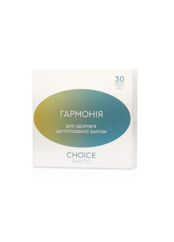 Гармонія – це комплекс, який нормалізує роботу щитоподібної залози. - Постачає важливі для роботи залози сполуки, зокрема йод і селен. Містить цинк і кобаламін, що сприяють гарному засвоєнню мікроелементів. - Регулює інтенсивність вироблення тиреоїдних гормонів завдяки селену з фукусу, літоспермовій кислоті вовконога, рафаніну з редьки. - Нормалізує надходження ендокринних сполук до клітин за допомогою кислот омега спіруліни. - Підтримує роботу гіпофізу, насичуючи організм цинком, бета-каротином, оксикоричними кислотами. - Захищає тканини залози від аутоімунних пошкоджень, шкідливого впливу радіонуклідів і важких металів завдяки фукоїдану, фікоціанобеліну та альгінатам водоростей. Комплекс гармонізує стан при гіпер- та гіпотиреозі, тиреоїдиті, зобі й вузлах. Додатково допомагає боротися з результатами погіршення роботи залози: підвищеним холестерином, цукром у крові, ожирінням, набряклістю. Призначення: Покращення діяльності щитоподібної залози, гіпер- та гіпотиреоз, тіреоїдит, зоб і пов’язані з цим вторинні стани (набряки, ожиріння, цукровий діабет). Переваги: - Синергетичний ефект взаємодії пророщених зерен злаків і лікарських рослин суттєво підвищує ефективність фітокомплексу. - Унікальні властивості водоростей фукусу й спіруліни відновлюють роботу щитоподібної залози. Дія: Забезпечує нормальне функціонування щитоподібної залози. Надає поживну підтримку щитоподібній залозі. Захищає тканину щитоподібної залози від несприятливих зовнішніх впливів. Підвищує імунітет. СКЛАД - Пророщені зерна вівса, пшениці, кукурудзи - Фукус пухирчастий (Fucus vesiculosus) - Спіруліна (Spirulina maxima) - Вовконіг європейський (Lycopus europaeus) - Корінь редьки посівної (Raphanus sativus) - Зірочник середній (Stellaria media) - Корінь та листя петрушки (Petroselinum crispum) СПОСІБ ВИКОРИСТАННЯ Дорослим і дітям старше 12 років — по 1 капсулі 2 рази на день до їди, запиваючи водою. Курс вживання: 30-45 днів. Повторний курс — після 30-денної перерви. ПРОТИПОКАЗАННЯ Вагітність і період лактації, вік до 12 років, індивідуальна підвищена чутливість до компонентів продукту.