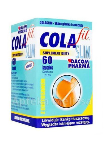 Особливості: COLAFIT SLIM з хітозаном та органічним кальцієм особливо рекомендований людям, які хочуть схуднути, піклуються про свою фігуру та мають проблеми з розтяжками та сухою, в’ялою шкірою. Вміщений в препараті хітозан - натуральна клітковина, отримана з морських ракоподібних, має здатність зв'язувати жир в шлунку. Він не перетравлюється, поглинає жир вагою в 6 разів більше власної ваги, який видаляється з організму перед метаболізмом. Важливою властивістю хітозану є здатність знижувати рівень холестерину в крові. Використання жорстких дієт для схуднення дуже часто знижує працездатність суглобів і кісток і позначається на зовнішньому вигляді шкіри. Саме тому препарат COLAFIT SLIM з хітозаном і колагеном (основним компонентом кісткової тканини, шкіри та суглобових хрящів) був створений для захисту органів опорно-рухового апарату та забезпечення гладкості та еластичності шкіри навіть у разі раптової ваги. втрати, а для запобігання утворенню т. зв "розтяжки". Інгредієнти: Хітозан - 300 мг, органічний кальцій - 298 мг, чистий органічний 2 мг, ліофілізований колаген 99,9%, 2 мг ліофілізованого колагену у формі кубика при споживанні виробляють 200 мг найякіснішого колагенового гелю в організмі. мікроелементи: Кальцій 321 мг Магній 2,7 мг Фосфор 0,54 мг Хром 0,052 мг Нікель 0,017 мг Цинк 0,005 мг Сліди вітамінів В2, В6, В12, Е та йоду Білок 510 мг Цукор 360 мг Жири 0,009 мг Клітковина 0,057 мг Енергетична цінність 15,2 кДж/ 3,66 ккал Упаковка: 60 капсул Дієтичні добавки не можна використовувати як заміну різноманітного харчування або здорового способу життя. Не перевищуйте рекомендовану добову дозу продукту. Дієтичні добавки слід зберігати в недоступному для маленьких дітей місці. Перед використанням продукту радимо прочитати детальну інформацію, наведену на упаковці або вкладеному листі-буклеті.