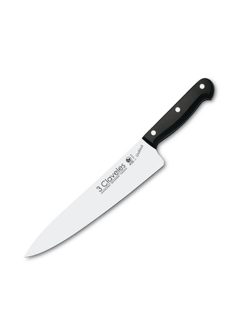 Відправка протягом 1-2 робочих днів. Характеристики: Серія: Uniblock; Матеріал леза: нержавіюча сталь; Матеріал ручки: поліоксіметилен; Призначення: кухонні, шеф; Колір: чорний; Довжина леза: 200 мм; Тип леза: штампований; Багатофункціональний шеф-ніж, підходить для шаткування овочів та фруктів, оброблення, нарізки м'яса, риби та інших робіт; Тип леза: Штамповане; Країна реєстрації бренду: Іспанія; Виробник: 3 Claveles; Матеріал рукояті: Поліоксиметилен; Країна-виробник товару: Іспанія; Довжина леза: 200 мм; Матеріал леза: Нержавіюча сталь; Тип кріплення рукояті: На заклепках; Колір рукояті: Чорний; Матеріал: Нержавіюча сталь, поліоксиметилен; Призначення: Для зелені Для коренеплодів Для м'яса Для овочів; Серія: Uniblock; Тип: Ніж кухарський; Торгівельна марка: 3 Claveles; Колір: Чорний;