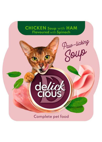 Особливості та переваги : різноманітність текстур, привабливий аромат та насичений смак; можна вживати в їжу щодня; дозволить урізноманітнити звичний раціон кішки; насичує організм тварини якісним білком; гідратує організм; корисний для котів, що відмовляються пити багато води протягом дня; оздоровлює шкіру та надає блиску шерсті при регулярному вживанні; покращує загальне самопочуття. Склад : курка 38 %, шинка куряча 4 %, олія соняшникова, тапіоковий крохмаль, шпинат сушений 0,125% (еквівалентно 1% шпинату), мінерали, ксилоза. Поживні речовини : протеїн 10 %, сирий жир 2 %, сира зола 1 %, сира клітковина 0,5 %, волога 83 %. Добавки (на 1 кг корму) : вітамін D3 (3a671): 500 МО, цинк (3b604): 24,5 mg(мг), залізо (3b103): 13 mg (мг), марганець (3b503): 1,4 mg (мг), мідь (3b405): 1 mg (мг), йод (3b201): 0,3 mg (мг). Рекомендована добова норма *: Вага дорослого кота, кг Мисочка 80 г, шт. 2 2 3 2 ½ 4 3 5 3 ½ *Індивідуальні норми годівлі можуть змінюватися залежно від віку, породи, рівня активності та довкілля тварини. Рекомендації щодо годування : годувати при кімнатній температурі. Забезпечте постійний доступ до чистої питної води. Умови зберігання : зберігати в закритому вигляді в сухому, прохолодному, недоступному для дітей місці. Після відкриття зберігати в холодильнику не довше 48 годин. Фасування : 80 г