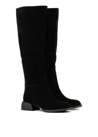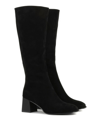 Високі чорні замшеві чоботи з масивним стійким каблуком — поєднання класики та сучасного стилю. М'який матеріал забезпечує комфорт і тепло, а стриманий дизайн робить ці чоботи універсальним вибором для будь-якого образу — від повсякденного до більш офіційного. Ідеальні для холодної пори року, вони додадуть вашому вбранню елегантності і вишуканості.