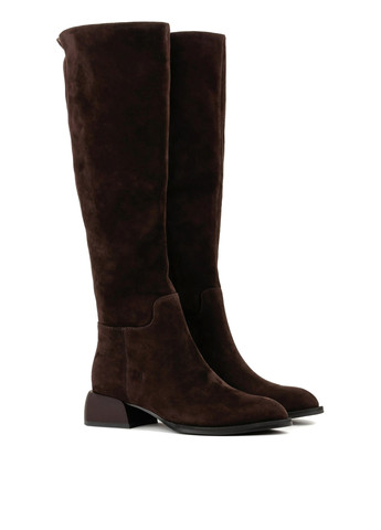 Високі коричневі замшеві чоботи з невеликим стійким каблуком — ідеальний вибір для стильних осінніх і зимових образів. М'яка, ніжна текстура замші створює відчуття тепла і комфорту, а елегантний силует подовжує ноги, додаючи витонченості будь-якому вбранню. Ці чоботи легко поєднуються як з сукнями, так і з джинсами, підкреслюючи індивідуальність та смак.