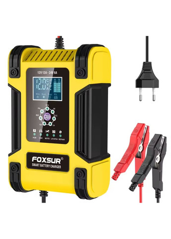 FOXSUR 12V 12A Автоматичний зарядний пристрій для автомобільних акумуляторів FOXSUR 12V 12A - це сучасний повністю автоматичний зарядний пристрій для автомобільних і мотоциклетних акумуляторів. Оснащений розумною 7-ступінчастою системою заряджання та технологією Power Pulse Repair, що допомагає відновлювати «виснажені» або сульфатовані батареї. Підходить для більшості типів акумуляторів: гелевих, AGM, кальцієвих, свинцево-кислотних, LiFePO4. Має цифровий дисплей, що показує напругу, струм, температуру та стан зарядки в реальному часі. Характеристики: Бренд: FOXSUR Модель: Fast Power Charging / Power Pulse Repair; Матеріал корпусу: міцний термостійкий ABS; Вхідна напруга: 100–240 В, 50/60 Гц; Вихідна напруга: 12 В / 12 А; Мінімальна напруга запуску: 8 В; Підтримувана ємність акумуляторів: 6-200 А·год; Ефективність: близько 85%; Температурний захист: 65 °C ± 5 °; Підтримувані типи акумуляторів: AGM, GEL, WET, Ca, LiFePO4, свинцево-кислотні. Переваги: Повністю автоматичний процес заряджання. 7 етапів зарядки: захист, імпульсне відновлення, стабілізація, тестування. Технологія Power Pulse Repair відновлює сульфатовані батареї. Вбудований захист від перегріву, короткого замикання, зворотного поляритету. Цифровий LCD-дисплей показує всі параметри в реальному часі. Компактний і легкий корпус, зручно для використання вдома чи в дорозі.