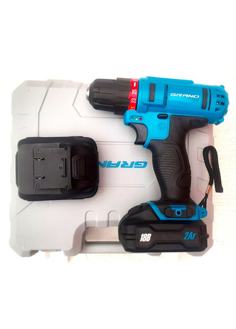 Шурупокрут акумуляторний Grand ДА-18/10 Li Шурупокрут акумуляторний Grand ДА-18/10 Li — це невеликий, але досить потужний акумуляторний шурупокрут на літієвих батареях. Нове надходження 2018 року на ринок України. Досить витривала модель акумуляторного шурупокрута, зібрана з якісних комплектуючих, стане для Вас незамінним помічником у тих місцях, де не передбачено електрику. Шурупокрут Grand ДА-18/10 Li працює від акумулятора, тому має високу мобільність. Акумулятор Li-lon на 18 В з місткістю 3 А./год. Робота такого акумулятора може забезпечити Вас тривалою тривалістю цих робіт, крім того, заряджання акумуляторів не займе багато часу (час заряджання — 1 година). У запасі передбачений ще один акумулятор, що дає змогу безперервно вести роботу з інструментом упродовж тривалого часу. Акумуляторний шурупокрут ДА-18/10 Li має дві швидкості роботи, за першої швидкості, кількість обертів становить 400 об/хв за другої ж швидкості 1500 об./хв. Шурупокрут ГРАНД — це якісний і довговічний у роботі інструмент побутового та професійного застосування. Для зручності експлуатації на цьому інструменті впроваджені підсвітка робочої зони на час вмикання й індикатор заряду батареї. Сам Шурупокрут Гранд ДА-18/10 Li має малі габарити та вагу, а завдяки гумовій ручці працювати з ним просто. Купити Шурупокрут Grand ДА-18/10 Li недорого Ви можете в нашому магазині. Особливості: Електронний регулятор частоти обертання; 21 позицій встановлення обмеження крутного моменту; Прогумований держак і корпус Швидкозатискний патрон; Реверс; Швидка зупинка обертання (автостоп); Великий вбудований ліхтарик; Швидке заряджання 1 година; Електронна система автоматичного захисту акумулятора від перевантажень, перегрівання; 2 швидкості редуктора Характеристики: Напруга — 18 вольтів; Ємність акумулятора — 3 А./год.; Кол. скоростей - 2; Швидкість обертання: 1 швидкість (0-400) об./хв; 2 швидкість (0-1500) об./хв; Тип патрона — самозатискний; Діаметр патрона — 10 мм; Кількість акумуляторів — 2 шт.; Час заряджання — 1 година; Крутний момент — 26 Нм; Момент зусилля — 21 позиції +режим свердління. Комплектація: Шурупокрут акумуляторний Grand ДА-18/10 Li Акумуляторні джерела живлення 2 шт. Зарядний пристрій Кейс, для безпечнішого транспортування товару Інструкція з експлуатації Гарантійний бланк на сервісне обслуговування ОI090818