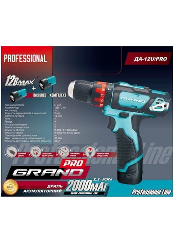 Акумуляторний шурупокрут Grand ДА-12U/PRO ( ударний) Зручний і потужний акумуляторний шурупокрут. Призначений для закручування/відкручування шурупів і гвинтів, а також для свердління отворів у різних конструкційних матеріалах. На відміну від мережевих моделей, акумуляторний шурупокрут не залежить від розетки на момент роботи. Може використовуватися далеко від джерела живлення, наприклад, на дахах будинків або на вулиці. Крім механічного тріскачка на 25 положень, є регулятор для вибору режиму роботи — свердління або свердління з ударом. У другому режимі шурупокрут за принципом роботи схожий на ударний дриль, але не варто сподіватися, що він замінить перфоратор. Вгорі корпусу розташований перемикач крутного моменту та швидкості обертання шпинделя. Перше положення забезпечує високі оберти, що ідеально підходить для свердління отворів. Для закручування кріпильних виробів передбачений другий режим перемикача, де оберти нижчі, але вище обертальний момент. Для роботи в умовах поганого освітлення або в темну пору доби призначена підсвітка. Літій-іонний акумулятор, з напругою 12 V, має високий запас ємності та тривалий термін експлуатації. Світлодіодна підсвітка сигналізує про поточний заряд батареї. Трикулачковий патрон затискає хвостовики свердел діаметром до 10 мм. Фіксація відбувається вручну, без застосування додаткових ключів. Особливості: Режим удару Компактні габарити Світлодіодна підсвітка Індикатор заряду Комплектація: Акумуляторний шурупокрут ДА-12U/PRO, акумулятор Li-ion-2 шт., зарядний пристрій інструкція, пластиковий кейс.